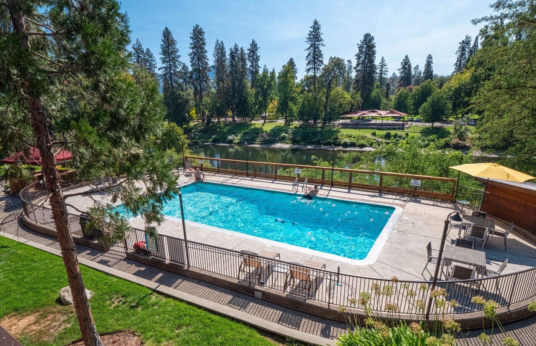There is not direct river access from the hotel. A short walk across the bridge will bring you to Riverside Park along the Rogue River with disc golf, play structures, a water fountain playground, a traditional playground, group gathering areas, sporting fields and opportunities to feed local wildlife.